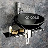 Combo include: tempered glass sink, Faucet, pop up drain, ptrap, glass shelf, decorative towel bar, stainless box, and hardware. Sliding Glass Rectangular Shelf 20 inch wide Decorative towel bar Through Unit - 18 inch length Drain distance from the wall-12 in stainless box- 17 in deep, 5 in high dimension: 22 in wide x 22 in deep Read more