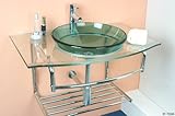 30 days money back Guarantee! At a Glance (All Included in this package): It come with faucet, p trap, drain, sink, and wall mount vanity. Tempered Glass Sink (clear) Faucet made of Solid Brass Construction w/ Chrome Finish Steel braided Water Supply Lines Pop-up Drain and P-Trap w/ Chrome Finish Tower bar included Basically everything pictured Includes 1 Year Limited Warranty** Vanity Dimensions glass countertop dimension: 32" wide 22" deep Glass sink dimension: Diameter of Glass Sink is 16-1/2"? Read more