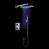 This LED shower set with hand shower is a quick solution to a high-end upgrade for it will remodel the look and feel of your bathroom instantly. The 8" square-shaped overhead shower head and adjustable hand shower allows you to completely customize this shower system to your needs.The LED effects of the 8" showerhead makes it even dramatic,the led light would change among blue,green and red according to the water temperature and the whole process is powered by water thus no battery is needed. There are two handles available on the control panel,the upper one is used as a diverter as you can use it to switch water between the overhead shower and the hand shower,for temperature control, you can use the other handle below,the whole process is very easy to accomplish. This is a product you will likely use frequently- upgrading the look and performance of your shower is sure to improve the quality of your overall bathing experience.