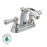 The American Standard Williamsburg 4 in. 2-Handle Low-Arc Bathroom Faucet in Polished Brass/Chrome offers a timeless look. It has a chrome finish with brass accents and a turn-of-the-century design. The 1.5-gallon per minute water flow rate helps conserve water. The ceramic disc valve helps reduce drips, further eliminating excess water use. The faucet is WaterSense certified and ADA compliant. Read more