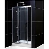 SHDR-4060728R-01 Width: 60", Door Opening: Right Pictured in Right Configuration Door The three sliding glass panel design of the Illusion shower door provides a wide, walk-in opening into your shower without compromising the function of the shower door. The design includes one stationary and two sliding door panels and allows for up to 1/2'' adjustment on each side during the door's installation. Features: -Shower door. -Chrome hardware finish. -Unique 3 panel design: 1 stationary and 2 panel frameless sliding door design provides a wide walk-in opening. -All three panels stack to one side. -Tempered 5/16'' (8mm) thick clear glass. -Anodized Aluminum profiles and guiderails. -Left or right door configuration is determined by facing the door standing outside of the shower. -Left configuration door closes to the left, right configuration door closes to the right. -Out-of-plumb adjustment up to 1/2'' on each side for easy installation. Specifications: -36'' Shower door dimensions: 72'' H x 34'' - 35'' W. -48'' Shower door dimensions: 72'' H x 46'' - 47'' W. -60'' Shower door dimensions: 72'' H x 58'' - 59'' W. For more information on this product please view the Sheet(s) below: Installation sheet Read more