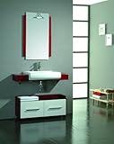This is a beautiful matching cherry wood bathroom set. Large white basin sink with cherry wood counter space on each side. Long vanity mirror with cherry wood siding. Convenient cherry wood and white roller floor cabinet. Read more