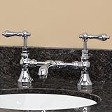 The Monroe Bridge Lavatory Faucet features lever handles and a low, classic spout. This bathroom lavatory faucet will coordinate well with traditional decor and is available in your choice of elegant finishes. Shown in Polished Nickel finish. Bridge faucet. Made of solid brass. Overall height: 6-1/2". 1-3/8" to bottom of aerator. Spout has 4-1/4" reach. Escutcheons measure 2-1/4" diameter. 8" centers. Spout is 2-1/2" tall. Handles are 4" L x 6-1/4" H. Includes pop-up drain in matching finish. Available in finishes listed below. Ships in 1-2 business days. Read more