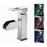 - Single Handle Waterfall LED Bathroom Vessel Sink Faucet, Chrome