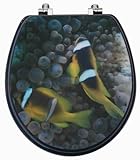 Round Purple 3D Toilet Seat with Clown Fish; Chromed Metal Hinges