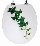 Round White GlaxitzTM Designer Toilet Seat with Green Ivy and Chromed Metal Hinges