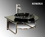 Tempered Glass Vessel Sink Combo+ Faucet W Pedestal Stainless HCP38