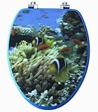 Elongated 3D Aqua Blue Toilet Seat with Coral Reef Scene; Chromed Metal Hinges