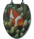 Elongated Green Toilet Seat with 3D Clown Fish and Chromed Metal Hinges