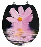 Round Black GlaxitzTM Designer Toilet Seat with Pink Flower and Chromed Metal Hinges
