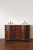 55" Double Sink Bathroom Vanity Solid Wood Cabinet with 1" Travertine Top (KL595)