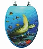 Elongated Blue 3D Sea Turtle Toilet Seat with Chromed Metal Hinges