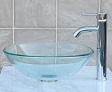 1/2" Tempered Natural Clear Glass Vessel Sink+chrome Faucet and drain/ ring