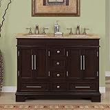 48" Double Sink Travertine Top Bathroom Vanity Cabinet Lavatory Furniture 224T
