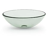 Premium Tempered Glass Vessel Sink; Round Shaped Bowl, Clear Color, 1/2" Thick