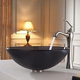 Kraus C-GV-104FR-12mm-15000BN Frosted Black Glass Vessel Sink and Ventus Faucet, Brushed Nickel