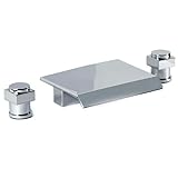 Two Handle Widerspread Deck Mounted Waterfall Bathroom Roman Bath Tub Faucet with Square Spout, Chrome,Special Discount